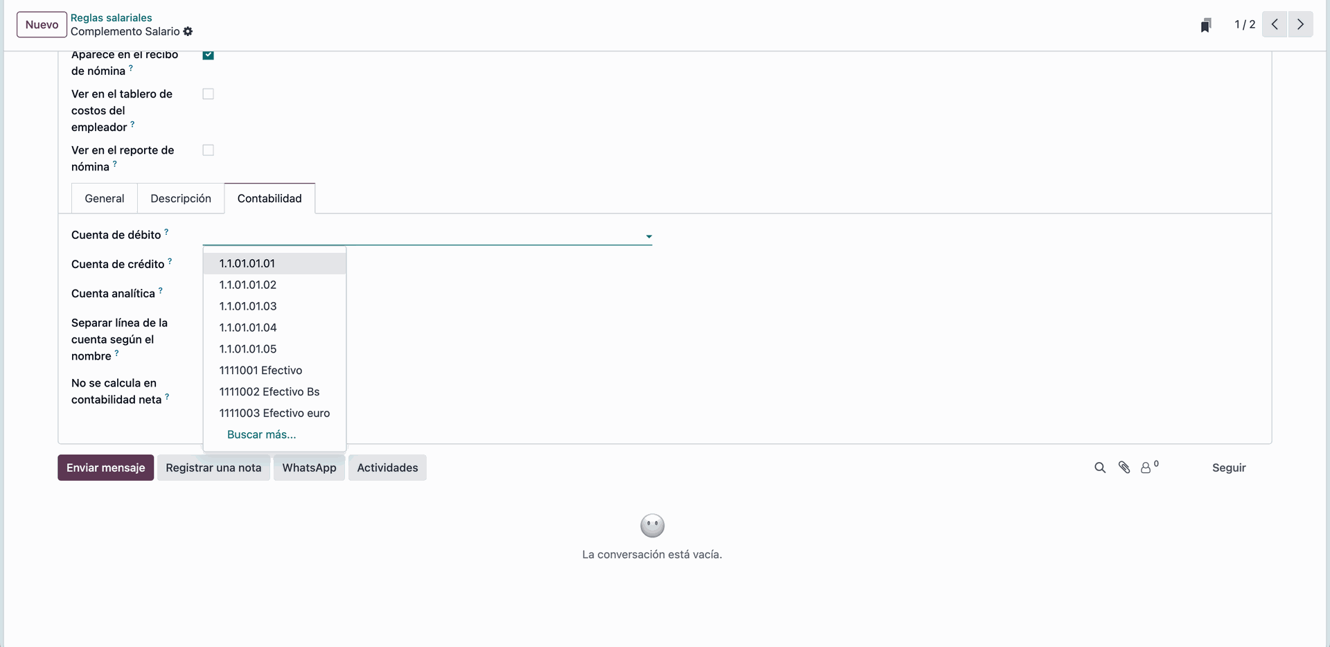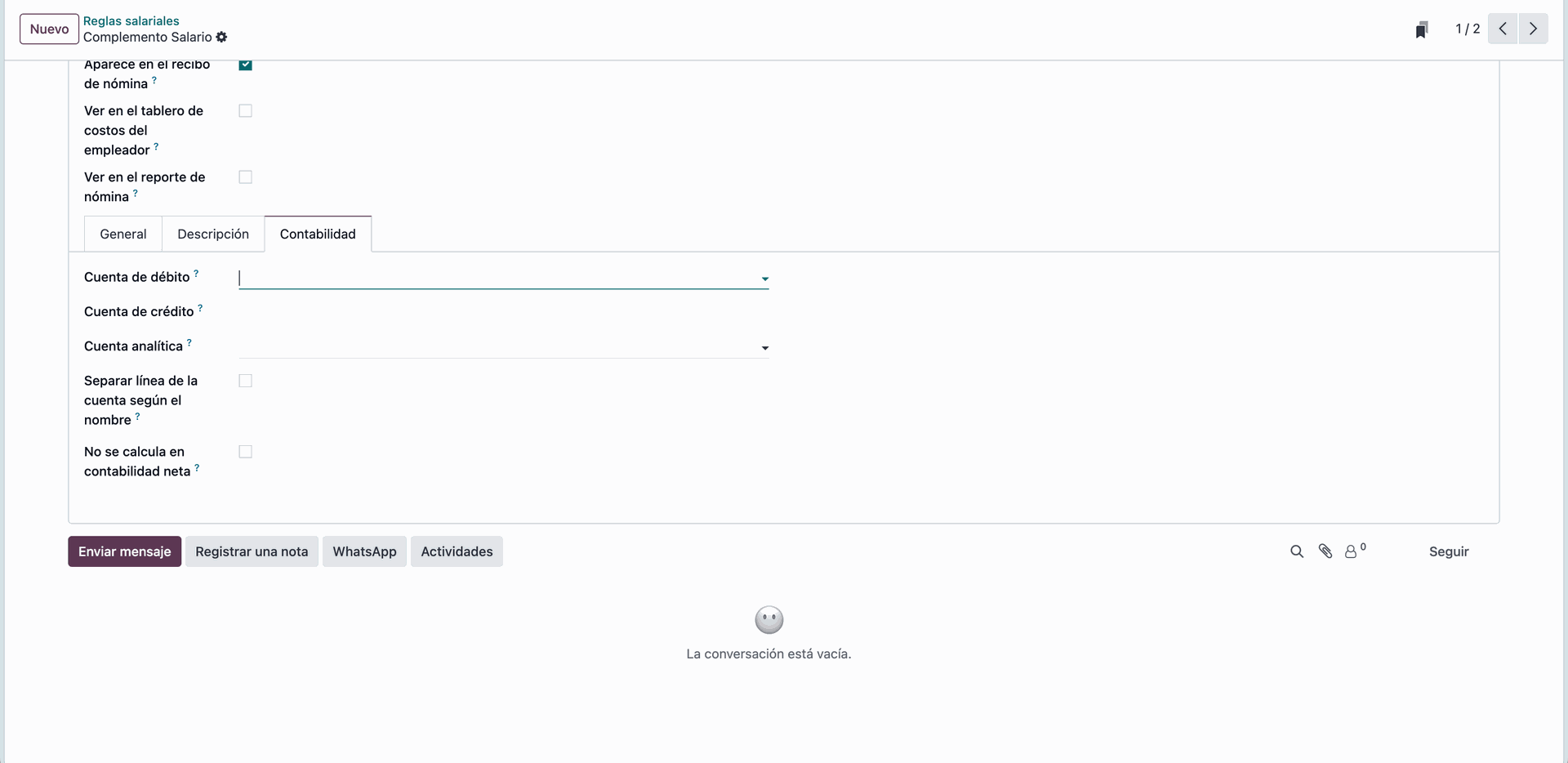 NO SE PUEDE AGREGAR ASIENTOS CONTABLES EN REGLA SALARIAL