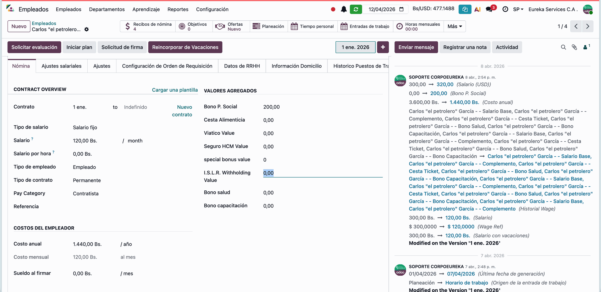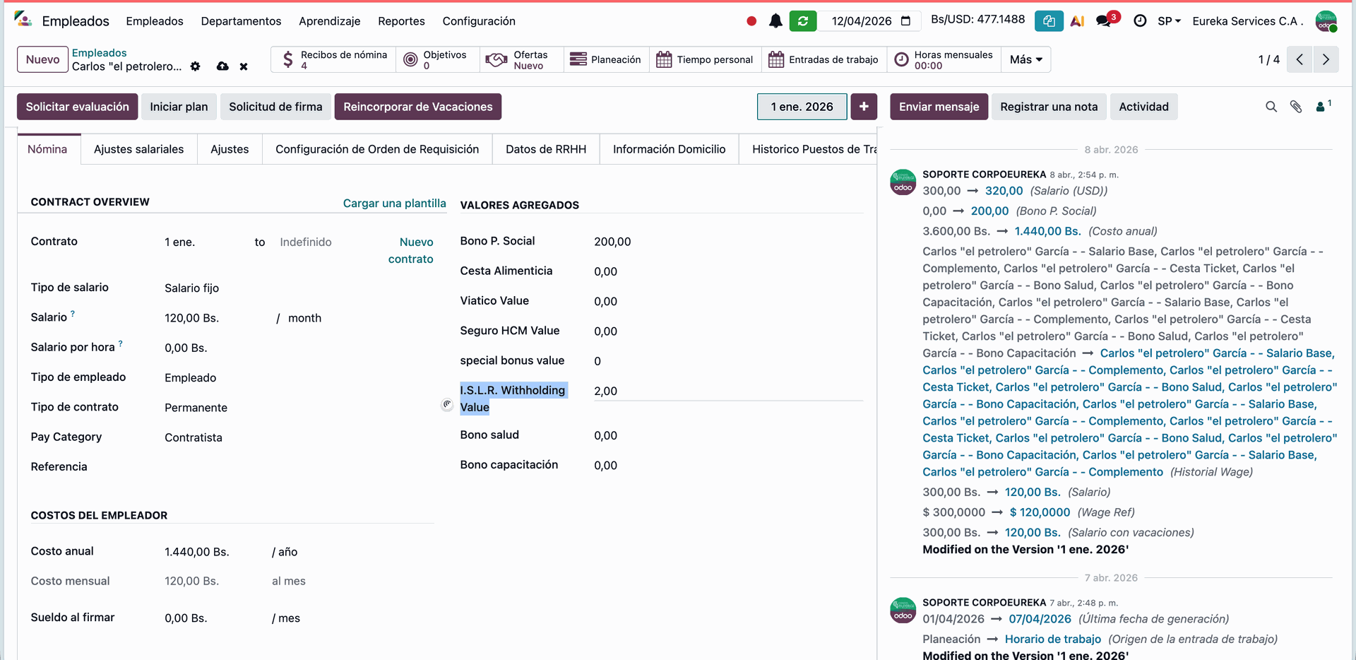 AGREGAR RETENCION ISLR A EMPLEADOS EN SU FICHA