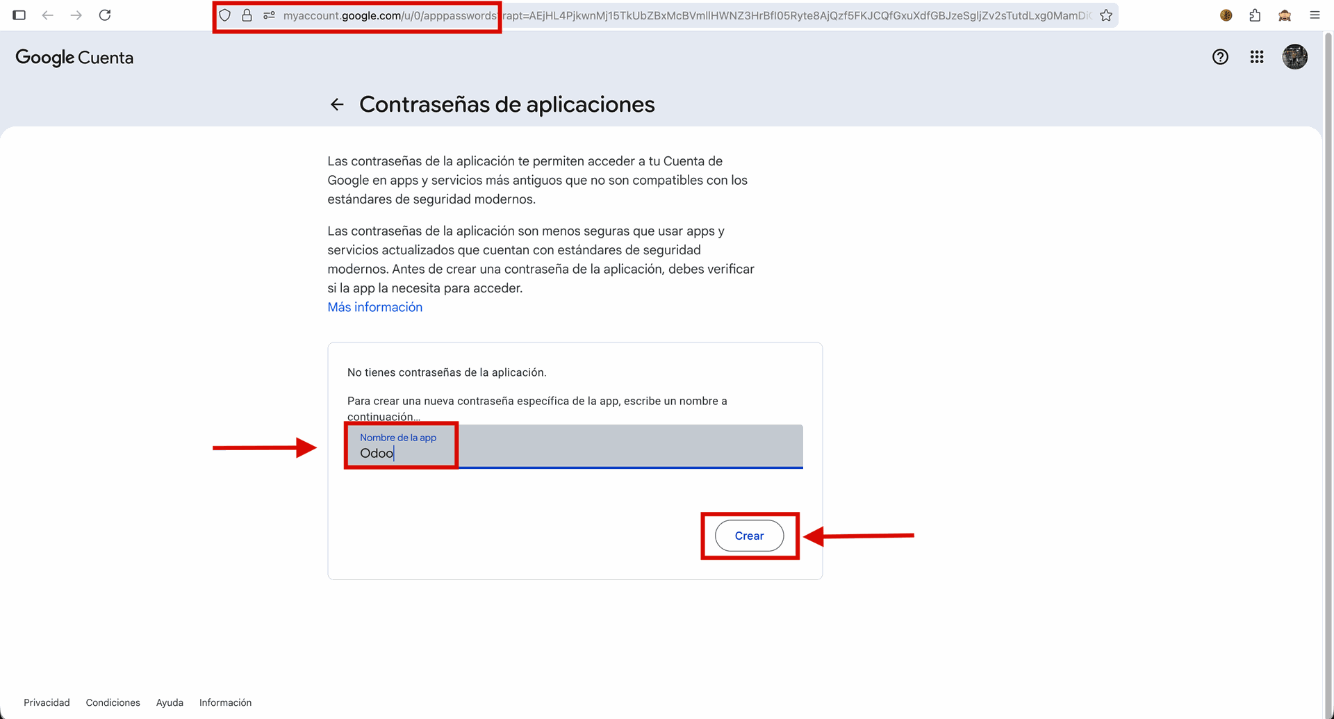 - Paso 1: Ingresa al enlace, luego asignar un nombre a la APP y luego usa el botón "Crear"