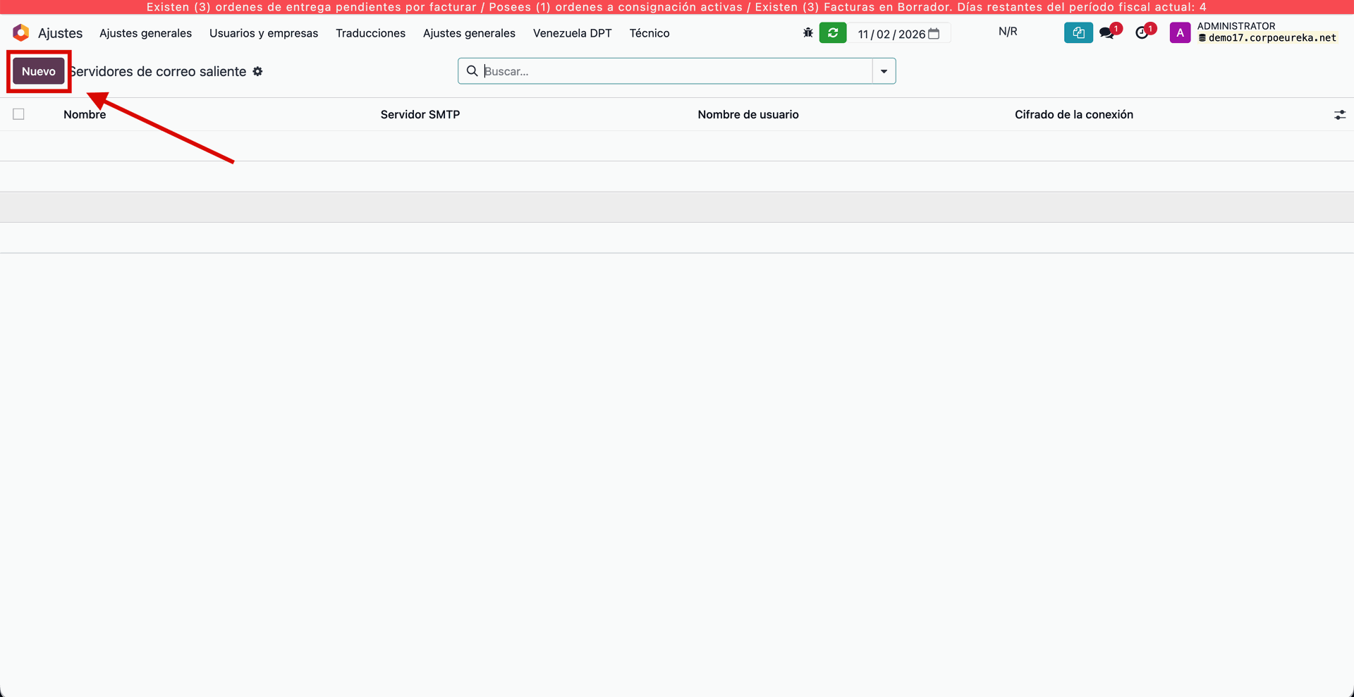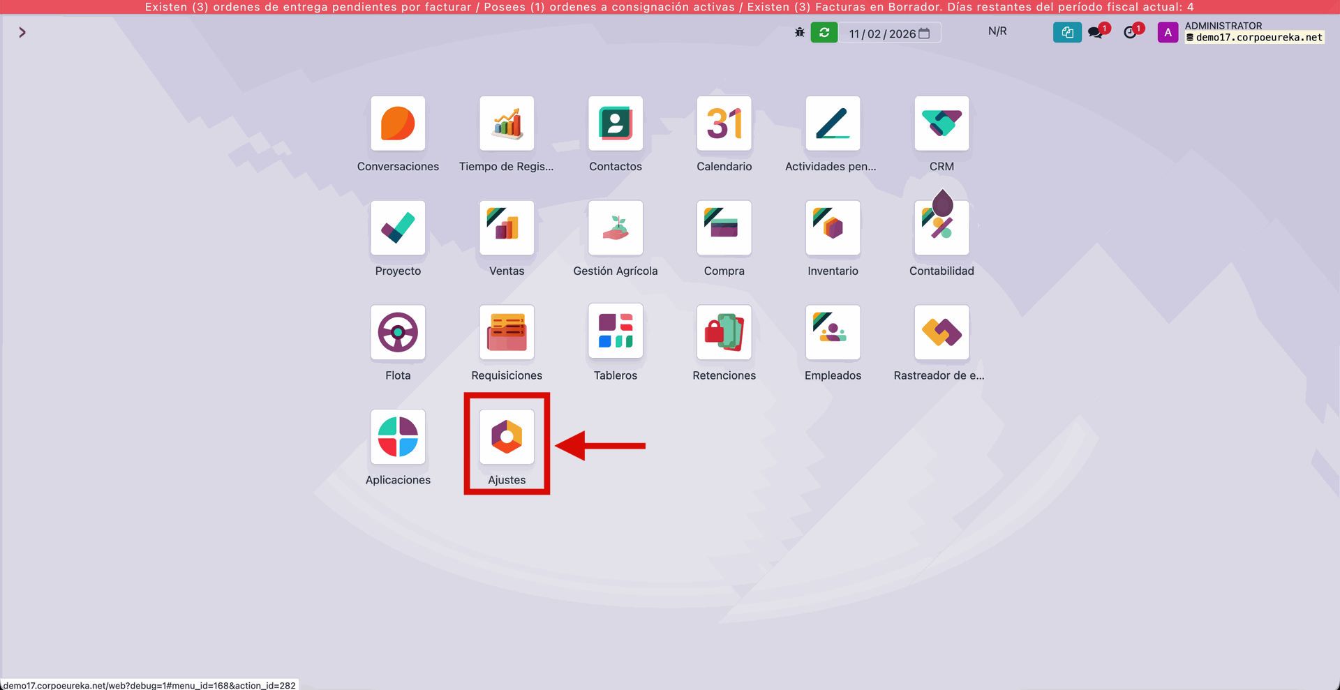 Paso 3: Ingresa a Odoo, dirígete e ingresa al menú de ajustes